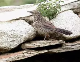 大草鹛中型鸟类,体长31~34厘米。上体灰色具粗著的黑褐色条纹,腰和尾上覆羽纵纹不明显。颊和耳羽灰色,…