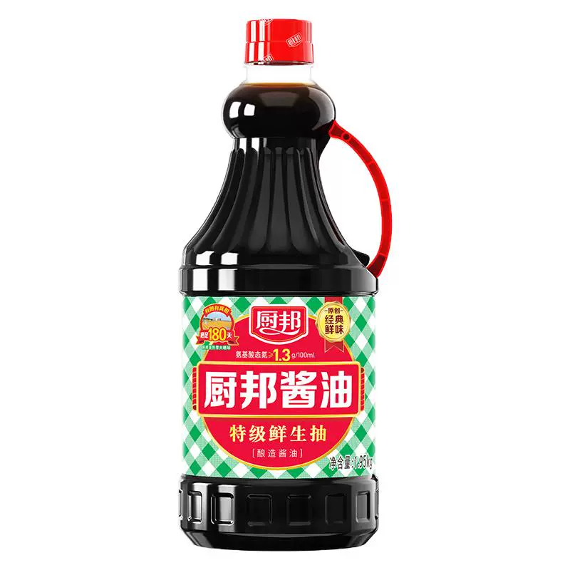 厨邦酱油是美味鲜酱油产品的代表作,从诞生之日起,就定位做“中国最好的酱油”。其味道鲜美、酱香浓郁,主要营养物质氨基酸态氮含量高达1.3g/100ml,比国家一级标准还高出85%,被誉为高档酱油的代名词。