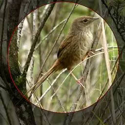 雌鸟从头至尾整个上体暗橄榄褐色,头的两侧和耳覆羽灰黄褐色,耳羽具淡色羽轴纹。两翅黑色,羽缘橄榄色,尾同背,为暗橄榄褐色。颏、喉白色,喉具黑褐色条纹,在两侧条纹几乎连成线状。上胸橄榄灰褐色具有由明显的黑色斑点形成的纵纹,下胸、两胁、腋羽和翼下覆羽橙棕色,腹、肛周和尾下覆羽白色。