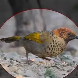 幼鸟上体橄榄褐色,头顶和背具淡棕黄色或棕白色羽干纹,两翅暗褐色,翅上覆羽具橙棕色端斑,外翈羽缘亦为橄榄棕褐色。颏、喉黄白色,两侧各具一条暗褐色纵纹,胸、腹鲜橙棕色具黑褐色端斑,尤以上胸较密而显著,腹至尾下覆羽黄白色,腋羽鲜橙棕色。 虹膜褐色,嘴、脚蜡黄色。
