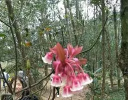 弯蒴杜鹃:常绿灌木,高可达5米。枝细长,灰褐色,叶革质,常集生枝顶,近于轮生,叶柄被刚毛或腺头刚毛…