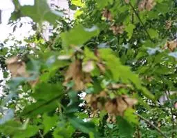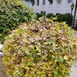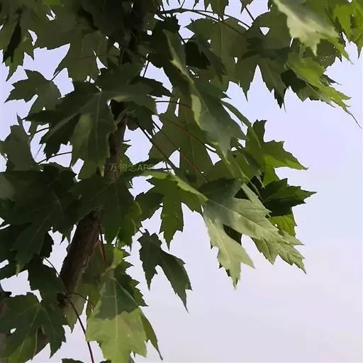 4. 叶斑病:该病害主要危害糖槭叶片。 初期多在叶基部或叶脉基部形成小斑,以后逐渐扩大成不规则斑,病斑大小不等。 病斑退绿失水后,变成黄白色,象薄纸一样;叶片有的是在病斑穿孔后脱落,有的是在病斑不大时即脱落。 前些年,糖槭叶斑病在哈尔滨市区的发生比较严重,在7~8月份有大量叶片枯黄脱落,严重时树上绿叶所剩无几,呈枯树状。 目前,杀菌剂可杀得、百菌清、甲基托布津和退菌特等对糖槭叶斑病分生孢子的萌发有极好的抑制作用。 建议在5月初至7月初,视降雨情况,施药3~ 4次。