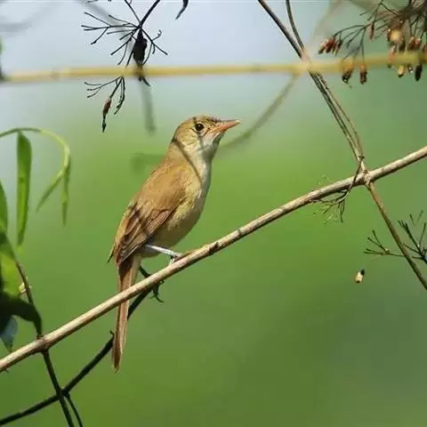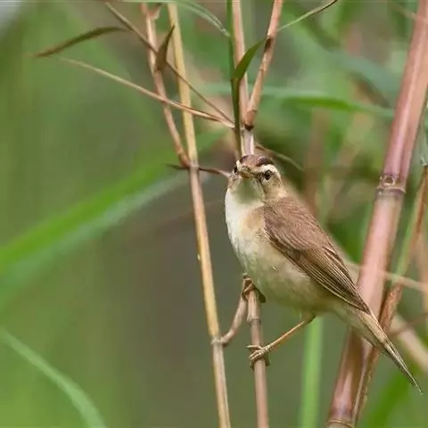 雌鸟上体橄榄褐色或橄榄黄褐色,眼先和眼周淡茶黄色,尾上覆羽和尾棕褐色,飞羽褐色,羽缘棕褐色。颏灰白色,喉、胸淡灰褐色或淡土褐色,颏、喉和头侧常缀有赭色,腹淡灰色,尾下覆羽皮黄色。