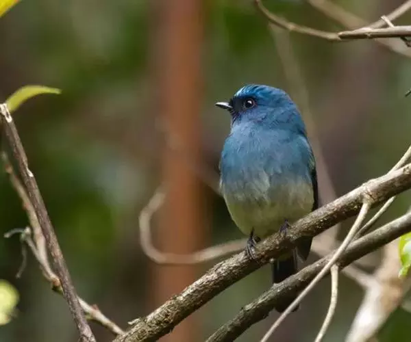 纯蓝仙鹟(学名:Cyornis unicolor):体长16-17厘米,体重18-23克。是一种体型略大的浅蓝色或近褐色的鹟。雄鸟上体亮丽钴蓝,眼先黑,喉及胸浅蓝,腹部灰白,尾下覆羽近白。与铜蓝鹟的区别在嘴较长,体羽无绿色,眼圈黄褐。雌鸟上体灰褐,尾多棕褐色,下体灰褐,眼圈及眼先黄褐,有时上嘴基上有狭窄的暗青绿色带。亚成鸟褐色并具黑色及黄褐色杂斑。虹膜褐色,嘴褐色,脚褐色。