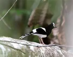 白眉扇尾鹟:体长17厘米,是一种中等体型的灰色扇尾鹟。色彩独特。宽宽的眉纹及前额白色,尾有白色宽边…