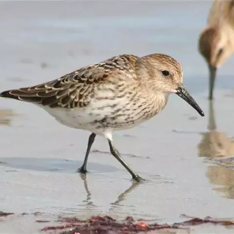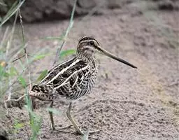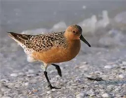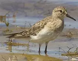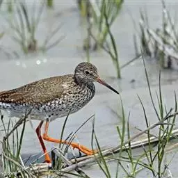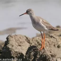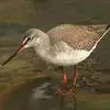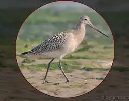 红脚鹬:体长28厘米,上体褐灰,下体白色,胸具褐色纵纹。飞行时腰部白色明显,次级飞羽具明显白色外缘。…