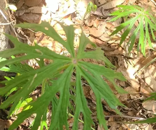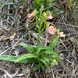 植株高8-35厘米。块茎长圆形,肉质,长2-3厘米,直径1-2厘米。茎粗壮,直立,圆柱形,下部具4-6枚叶,向上具1-3枚苞片状小叶。叶片线状披针形至近长圆形,长10-15厘米,宽1.5-2厘米,先端渐尖,基部抱茎。