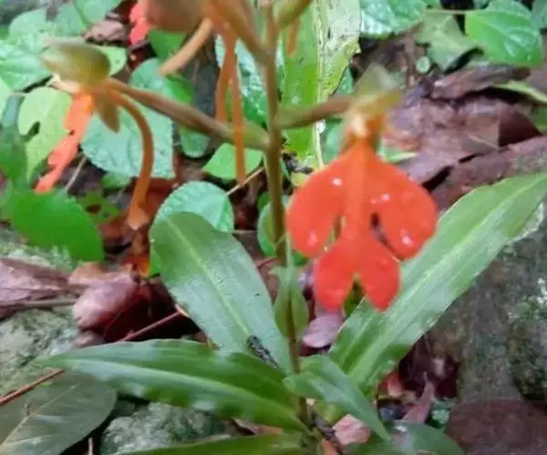 橙黄玉凤花(学名:Habenaria rhodocheila Hance)是兰科、玉凤花属植物,多年生草本,高8-35厘米。块茎长圆形,肉质。叶条状长圆形,长10-15厘米,先端渐尖,基部抱茎。总状花序具2-10余朵疏生的花,花苞片卵状披针形;子房圆柱形;花中等大,萼片和花瓣绿色,唇瓣橙黄色、橙红色或红色;中萼片直立,近圆形,凹陷;侧萼片长圆形;花瓣直立,匙状线形;唇瓣向前伸展,轮廓卵形。蒴果纺锤形,花期7-8月,果期10-11月。