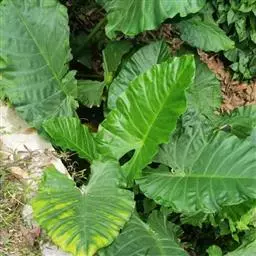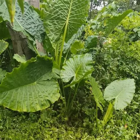 野芋是天南星科芋属一年生湿生草本植物。块茎球形;叶柄直立肥厚,长达1米以上;叶片薄革质盾状,…