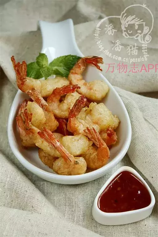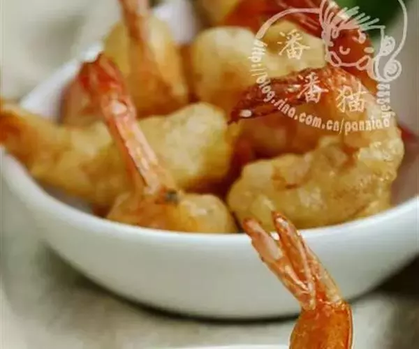 4、用手拿着虾尾,沾满脆浆,放落将滚之油中炸至金黄色而又熟,捞起上碟。可蘸桔油或茄汁吃。