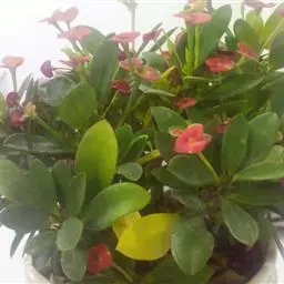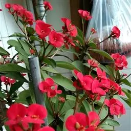 虎刺梅:别称铁海棠,是蔓生灌木植物。茎多分枝,长60-100厘米,直径5-10毫米,具纵棱,密生硬…