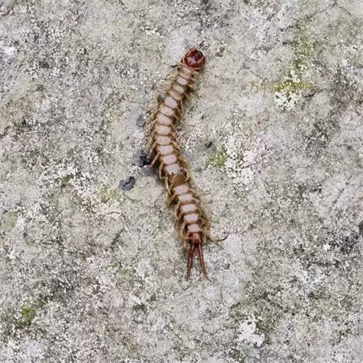 地蜈蚣目(Geophilomorpha):体细长,具30—170对足,无眼。