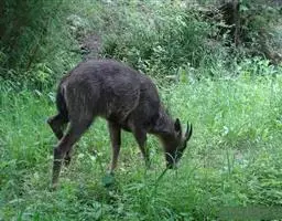黑麂是偶蹄目鹿科鹿属哺乳动物,又名别称青麂、红头青麂、乌金麂、蓬头麂。体型较大,体长约1米,…