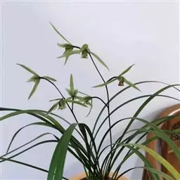 寒兰是兰科兰属的地生草本植物。茎为椭圆形;叶呈带状,尾部修长渐尖,叶脉较明显;每秆花枝开5-12朵,…