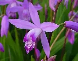 带唇兰:假鳞茎暗紫色,圆柱形,罕为卵状圆锥形,被膜质鞘,顶生1枚叶。叶狭长圆形或椭圆状披针形。…
