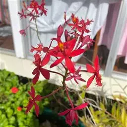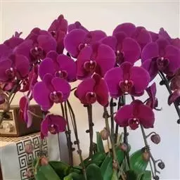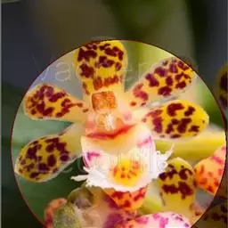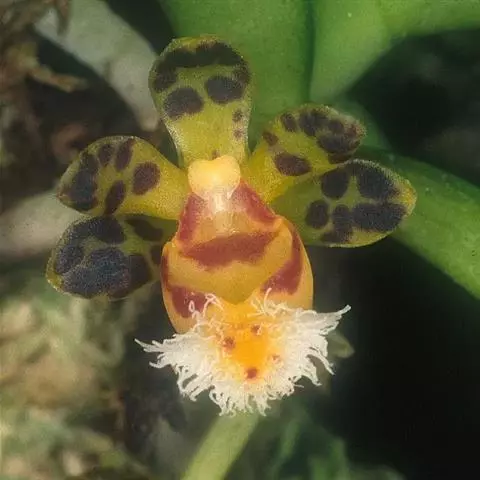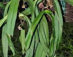 大花盆距兰 Kuntze):茎粗壮,长2-5厘米,节间长约1厘米。叶大,带状或长圆形。伞形花序侧生…