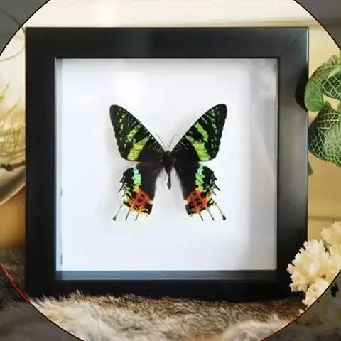 天堂凤蝶翅展可达105mm。前、后翅自基角至后缘约1/2~2/3端为纯净的宝蓝色,后角至后缘1/3…