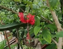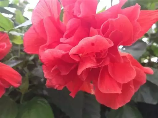 重瓣,较朱槿为大,花萼小,钟形,先端5裂,基部具有苞片多枚;花瓣多枚,排列成彩球状,全年开花,花大型单立腋生,以鲜红色最多。