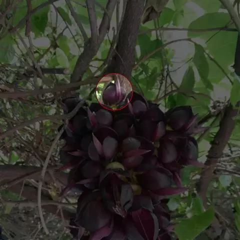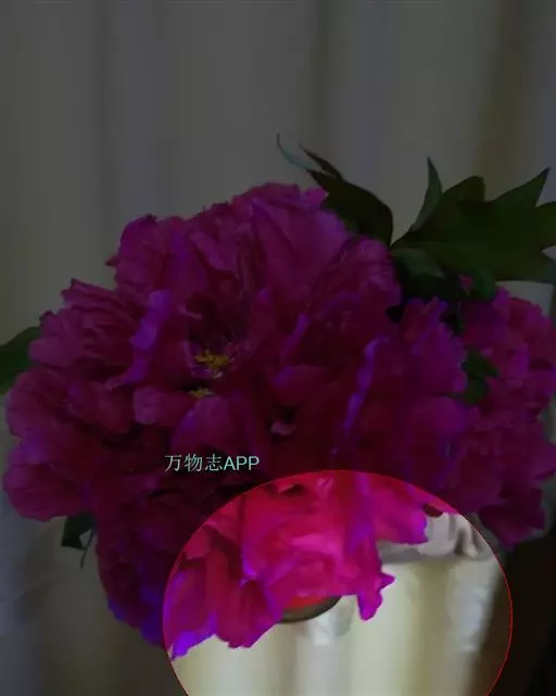 本变型的花粉紫色,花瓣内面基部洋红色,重瓣。