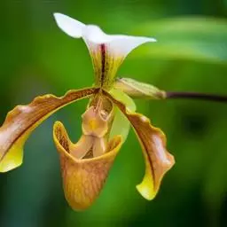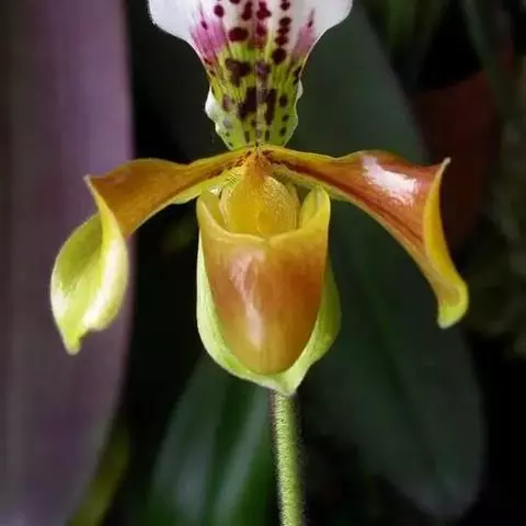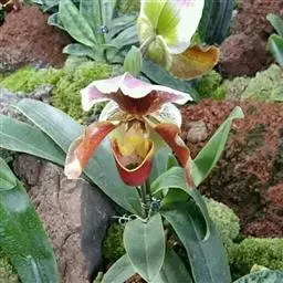 兜兰花比较雅致,色彩庄重,色及带有不规则斑点或条纹。花瓣较厚,花朵开放期比较长。属观赏类花草。