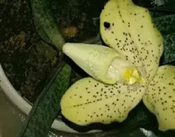 同色兜兰(学名:Paphiopedilum concolor)兰科,兜兰属地生或半附生植物。叶基生;数枚至多枚,叶片带形、革质。花葶从叶丛中长出,花苞片非叶状;子房顶端常收狭成喙状;花大而艳丽,有种种色泽;中萼直立,花粉粉质或带粘性,退化雄蕊扁平;柱头肥厚,下弯,柱头面有乳突,果实为蒴果。6-8月开花。