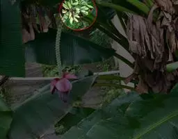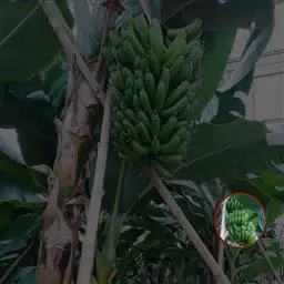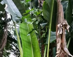 香蕉’),芭蕉科芭蕉属多年生草本植物,植株丛生,有匐匍茎;假茎浓绿有黑色斑点;叶片长圆形,…