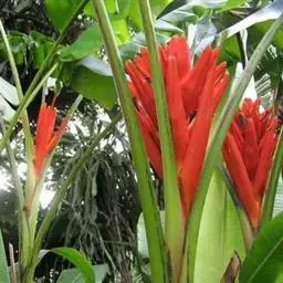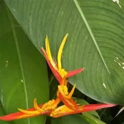 金嘴蝎尾蕉:芭蕉科,蝎尾蕉属多年生草本植物。株高可达6米。叶片长圆形,叶面绿色,叶背亮紫色;顶生花…