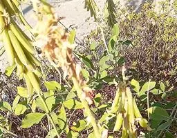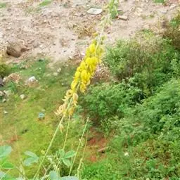 猪屎豆又名:椭圆叶猪屎豆、三圆叶猪屎豆。多年生草本,或呈灌木状;茎枝圆柱形,具小沟纹,密被紧贴的短柔毛。托叶极细小,刚毛状,通常早落;叶三出,柄长2-4cm;小叶长圆形或椭圆形,长3-6cm,宽1.5-3cm,先端钝圆或微凹,基部阔楔形,上面无毛,下面略被丝光质短柔毛,两面叶脉清晰;小叶柄长1-2mm。总状花序顶生,长达25cm,有花10-40朵;苞片线形,长约4mm;早落,小苞片的形状与苞片相似,长约2mm,花时极细小,长不及1mm,生萼筒中部或基部;花梗长3-5mm;花萼近钟形,长4-6mm,五裂,萼齿三角形,约与萼筒等长,密被短柔毛;花冠黄色,伸出萼外,旗瓣圆形或椭圆形,直径约10mm,基部具胼胝体二枚,冀瓣长圆形,长约8mm,下部边缘具柔毛,龙骨瓣最长,约12mm,弯曲,几达90度,具长喙,基部边缘具柔毛;子房无柄。荚果长圆形,长3-4cm,径5-8mm,幼时被毛,成熟后脱落,果瓣开裂后扭转;种子20-30颗。花果期9-12月间。