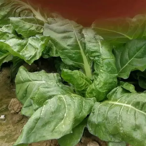 叶菾菜又名君达菜、牛皮菜、厚皮菜、是藜科甜菜属以嫩叶供食用栽培种的一个变种,为2年生蔬菜。原产于欧洲地中海沿岸,从阿拉伯通过丝绸之路传入我国。叶菾菜是藜科(Chenopodiaceae)甜菜属中以嫩叶作菜用的栽培种,二年生草本植物。学名Beta vulgaris L.var.cicla Koch.,别名菾菜(《别录》),甜菜(《日华子本草》),牛皮菜(《滇南本草》),石菜(《本草求原》),杓菜、猪牳菜(《广州植物志》),莙荙菜,光菜(《中国蔬菜栽培学》)。染色体数2n=2x=18。主根为肉质块根,含糖质,可制糖。煮食、凉拌或炒食,也可作饲料。