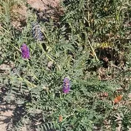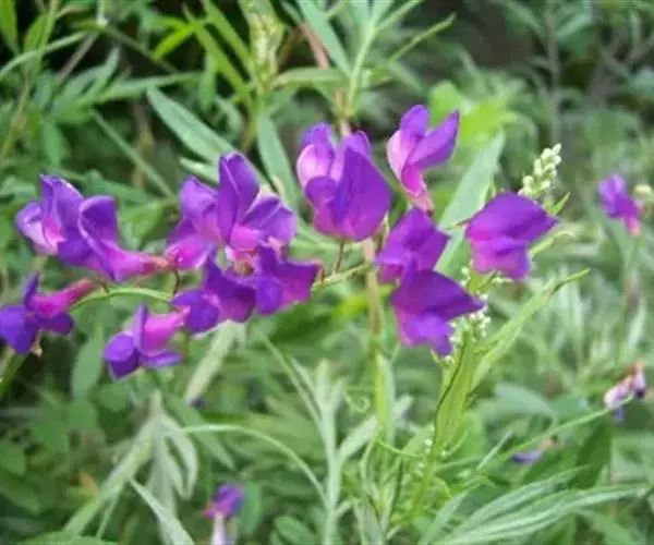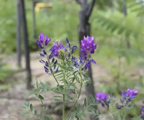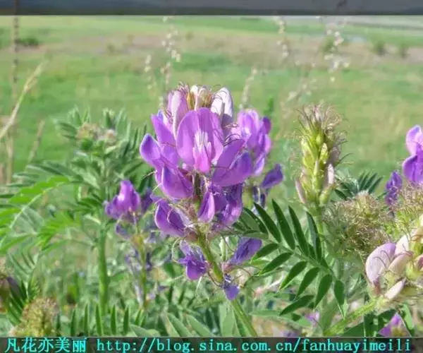 一年生或二年生草本,被开展、白色柔毛。茎直立,高达80厘米,分枝,有细棱。羽状复叶有11-19(23)片小叶,长4-8厘米;叶柄长不及1厘米;托叶分离,狭披针形或钻形,长4-8毫米;小叶长圆形、倒卵状长圆形或长圆状椭圆形,长5-20毫米,宽2-6毫米,先端圆或略尖,基部钝或近楔形,小叶柄长不及1毫米。总状花序较密,生10-20花,长3.5-10厘米;总花梗长2-5厘米;苞片线形或刚毛状,长3-4.5毫米。花梗长1-1.5毫米;花萼斜钟状,长5-5.5毫米,萼筒长1.5-2毫米,萼齿线形或刚毛状,上边2齿较萼部短,下边3齿较长(长达4毫米);花冠紫色,旗瓣近倒卵形,长12-14毫米,宽6-8毫米,先端微缺,基部宽楔形,翼瓣长约10毫米,瓣片弯长圆形,长约7毫米,宽1-1.4毫米,先端钝,基部耳向外伸,瓣柄长约3毫米,龙骨瓣长约13毫米,瓣片近倒卵形,长8-9毫米,宽2-2.5毫米,瓣柄长约4.5毫米;子房有柄,被毛,柄长约1.5毫米。荚果线形,长1.5-2.5厘米,宽2-2.5毫米,先端凸尖喙状,直立,内弯,具横脉,假2室,含20-30颖种子,果颈短,长1.5-2毫米。种子淡褐色或褐色,肾形,长约1毫米,宽约1.5毫米,有斑点,平滑。花期7-9月,果期8-10月。