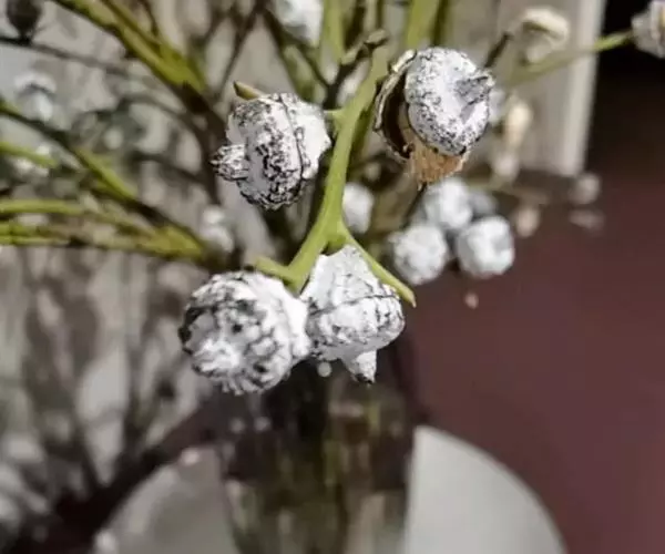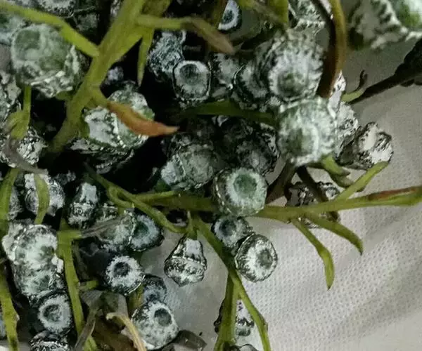 果实成熟,视其蒴果白粉减少、果缘呈褐色、果办微裂,即可开始采种。采摘下的蒴果在日光下暴晒4-5天,种子自行脱出,收藏备用。100kg果实,得种子约1-1.5kg。