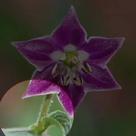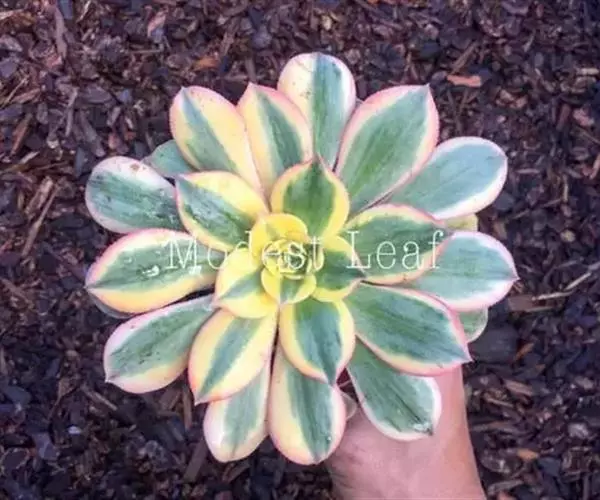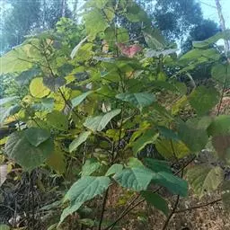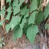 立灌木,株高1.5米左右,长块根,根部肉质。叶掌状3~7深裂,裂片披针形,全缘,裂片中央有不规则的黄色斑块。叶面绿色,叶柄红色,花序腋生,有花数朵.