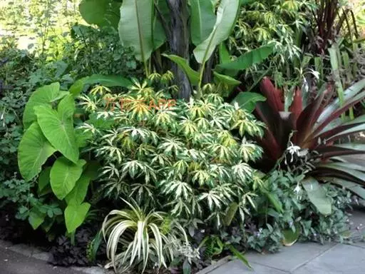 花叶木薯,Manibot esculenta cv. Variegata,大戟科木薯属植物。原产美洲热带地区
