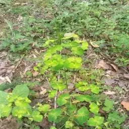 直直立灌木,株高1.5米左右,长块根,根部肉质。叶掌状3~7深裂,裂片披针形,全缘,裂片中央有不规则 的黄色斑块。叶面绿色,叶柄红色,花序腋生,有花数朵.