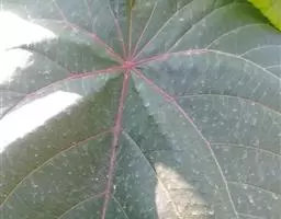 盾叶木薯(M. peltata):叶片盾状,全缘,叶面灰绿色。叶脉凸出明显,粉红色。花叶木薯又名斑叶木薯,原产热带美洲。喜温暖和阳光充足,不耐寒,栽培环境不宜过干或过湿,土壤要求肥沃、疏松和排水良好的微酸性壤土,冬季温度不低于15℃。