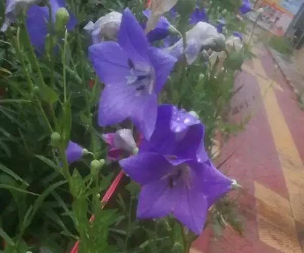 花单朵顶生,或数朵集成假总状花序,或有花序分枝而集成圆锥花序;花萼钟状五裂片,被白粉,裂片三角形,或狭三角形,有时齿状;花冠大,长1.5~4.0厘米,蓝色、紫色或白色。