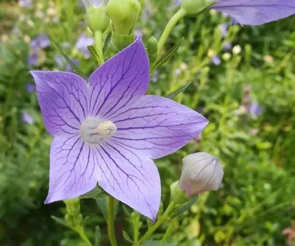 桔梗(Platycodon grandiflorus),别名包袱花、铃铛花、僧帽花,是多年生草本植物,茎高20~120厘米,通常无毛,偶密被短毛,不分枝,极少上部分枝。叶全部轮生,部分轮生至全部互生,无柄或有极短的柄,叶片卵形,卵状椭圆形至披针形,叶子卵形或卵状披针形,花暗蓝色或暗紫白色,可作观赏花卉;其根可入药,有止咳祛痰、宣肺、排脓等作用,中医常用药。在中国东北地区常被腌制为咸菜,在朝鲜半岛被用来制作泡菜,当地民谣《桔梗谣》所描写的就是这种植物。单凭名称,有人会误以为桔梗乃桔子的梗,但实际上与桔子或柑橘属没有直接关系。