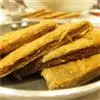 烤饼,也是江苏省镇江市丹阳市吕城镇的特色小吃,韭菜猪肉馅,用面团包好后,压成薄圆形,约0.5厘米厚,放油锅煎制而成。味道鲜美,入口滑腻。