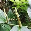 花细小,两性,稀单性,无梗,单生叶腋;萼与子房大部分合生成卵状椭圆形,萼全缘,常带紫色;无花盘;雄蕊1,生于子房上略偏一侧;花丝细,常短于花柱,被疏毛或无毛,花药红色,椭圆形,个字着生,顶端常靠在花药背部两药室之间,两裂,长约1毫米;子房下位,椭圆形,长不到1毫米,1室,内有1倒生胚珠,胚珠有一单层珠被,珠孔完全闭合,有珠柄,花柱宿存,针状,稍长于花丝,被疏毛,雌蕊先熟,主要为风媒传粉。