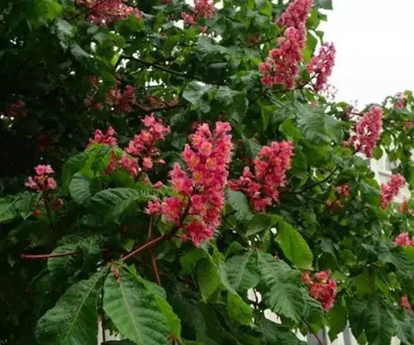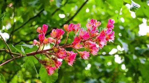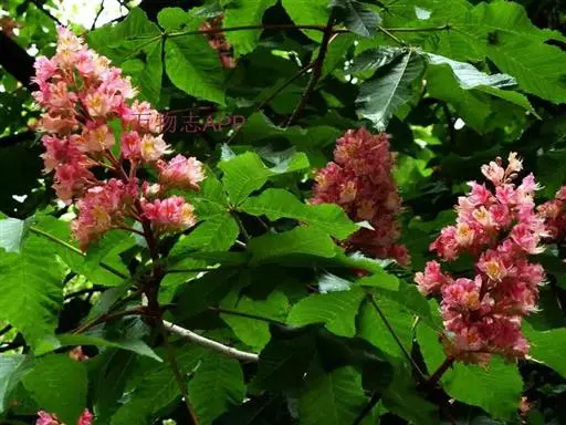 花期5-6月,花小为粉红色至深红色,花时红色硕大的顶生圆锥花序竖于叶簇中,似一个华丽的大烛台,缀满树冠,绿树红妆,非常美丽,十分壮观。果球形或倒卵形,于9月下旬至10月中下旬成熟。