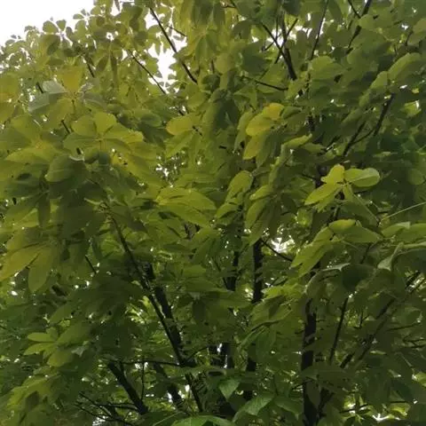 落叶乔木。树高可达15-20米,树冠伞形,干形挺拔。小枝粗壮,栗褐色,光滑无毛。掌状复叶小叶通常5枚,成树5-7枚,无柄,叶片倒卵形至长椭圆形,边缘有不规则重锯齿,背面绿色,叶大奇特而形美,在春季新叶初上时,叶色殷红如血,十分艳丽。在夏季的时候,也会因为树叶的不同长势而呈现多色,上部微红,中间嫩绿,下部墨绿,到了秋季,叶色澄黄如金,有“变色木”之称,树体通直,十分伟岸。