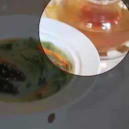 如果在炒南瓜的过程中太干,也可以沿炒锅边缘调入少许水或高汤 。