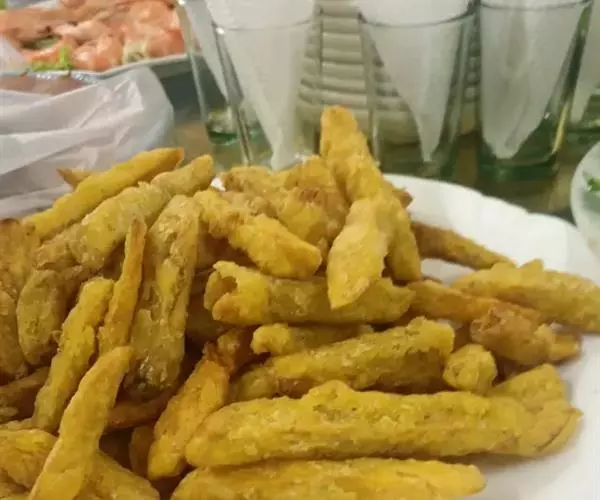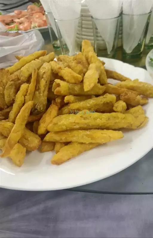 1.把南瓜削皮,切成像薯条似的长柱条,备用;