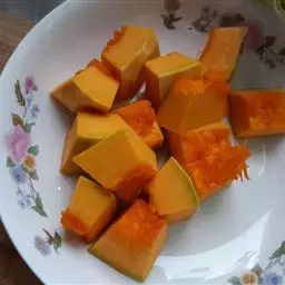 1.南瓜削皮去籽,切成块待用。