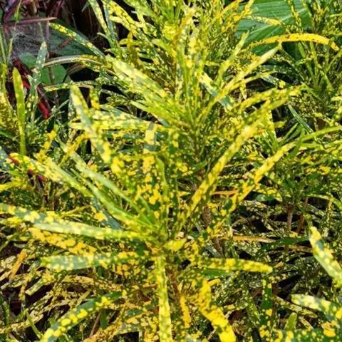 变叶木属(Codiaeum A.Juss),大戟科,原有15 种,现经过园艺学家的选育现已有数百个品种之多 。它分布于马来西亚、太平洋群岛和澳大利亚北部,我国引入栽培的有变叶木C.variegatum(L. )Bl. 1种,南方各地常见栽培。