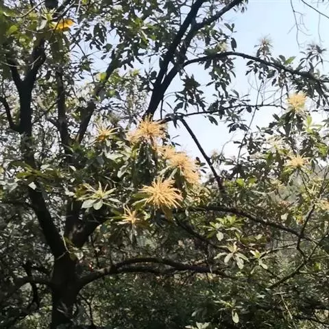 11月中旬,果径3-4厘米,黄色至棕色,示成熟,熟后开裂,种子脱落。采回种子经水选,将下沉坚果捞出,稍阴干,即可层积沙藏,干净湿润河沙厚度为种子的2倍,一层沙,一层种子,第一层和最后一层沙要厚些。2月初到3月上旬播种。坚果千粒重约950克,发芽率70-80%。