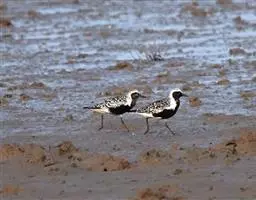 笛鸻(学名:Charadrius melodus):属小型涉禽。呈沙色。大小如麻雀,跗蹠修长,胫下部亦裸出。中趾最长,趾间具蹼或不具蹼,后趾形小或退化。翅形尖长,第1枚初级飞羽退化,形狭窄,甚短小;第2枚初级飞羽较第3枚长或者等长。三级飞羽特长。尾形短圆,尾羽12枚。