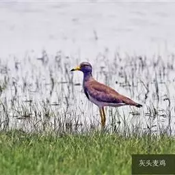 灰头麦鸡是鸻形目鸻科麦鸡属鸟类,繁殖期头、颈及胸灰色;胸部和腹部之间有黑色胸带分隔;背部及两翼大部分覆羽褐色;腹部和腰部白色;尾羽基部及边缘白色,近末端有黑色斑块。非繁殖期头颈部染褐色,颏及喉部白色,胸带不明显。初级飞羽黑色,其余飞羽及与之相邻的部分覆羽白色;虹膜红褐色,眼圈黄色;嘴尖段黑色,后段黄色;腿和脚黄色。灰头麦鸡分布于欧亚大陆及非洲北部、中南半岛以及太平洋诸岛屿,在中国分布于东南沿海地区。栖息于丘陵、平原地区河流、湖泊和沼泽等水体附近。繁殖期成对活动,其余时间集群活动。主要啄食甲虫、蝗虫、蚱蜢等昆虫,也吃水蛭、螺、蚯蚓、软体动物和植物叶片及种子。繁殖期为5—7月,1年繁殖1窝,每窝产卵4枚。灰头麦鸡被列入中国国家林业局发布的《国家保护的有益的或者有重要经济、科学研究价值的陆生野生动物名录》。