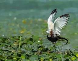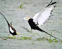 凤头麦鸡:中型涉禽,体长29-34厘米。头顶具细长而稍向前弯的黑色冠羽,像突出于头顶的角,甚为醒目。…