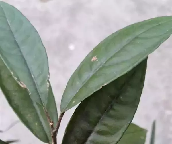 矮小灌木,具匍匐生根的根茎;直立茎高10-15厘米,幼嫩时被微柔毛,除侧生特殊花枝外,无分枝。叶片坚纸质,狭卵形或卵状披针形,或椭圆形至近长圆形,顶端急尖且钝,或渐尖,基部楔形或近圆形,长7-14 (-18) 厘米,宽2.5-4.8 (-6) 厘米,近全缘,具不明显的边缘腺点,叶面无毛,背面被细微柔毛,尤以中脉为多,具疏腺点,侧脉 (7-) 10-13对,与中脉几成直角,至近边缘上弯,连成远离边缘的不规则的边缘脉;叶柄长1-1.5 (-2) 厘米,被细微柔毛。